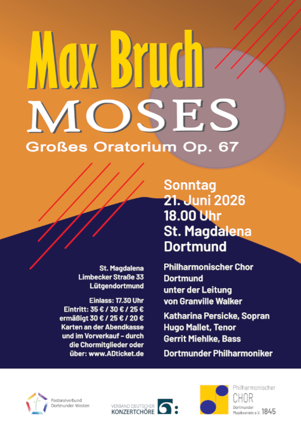 Unter der Leitung von Granville Walker gestalten Chor, Orchester und Solisten dieses selten aufgeführte Werk, das Bruchs eindrucksvolle Tonsprache und dramatische Gestaltungskraft eindrucksvoll zur Geltung bringt. Die Solopartien übernehmen dabei Katharina Persicke (Sopran) als Engel des Herrn, Gerrit Miehlke (Bass) in der Titelrolle des Moses sowie Hugo Mallet (Tenor) als Aaron.