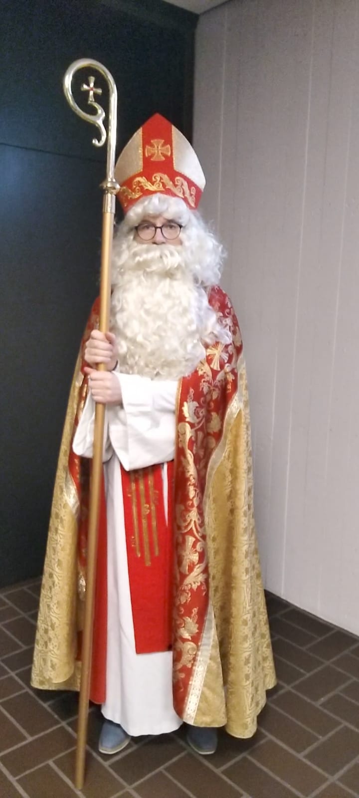 Erst klopfte es geheimnisvoll an die Türen und nach einem gespannten „Herein“ stand der Heilige Nikolaus im Bischofsgewand mit Mitra und Bischofsstab vor Tür.
