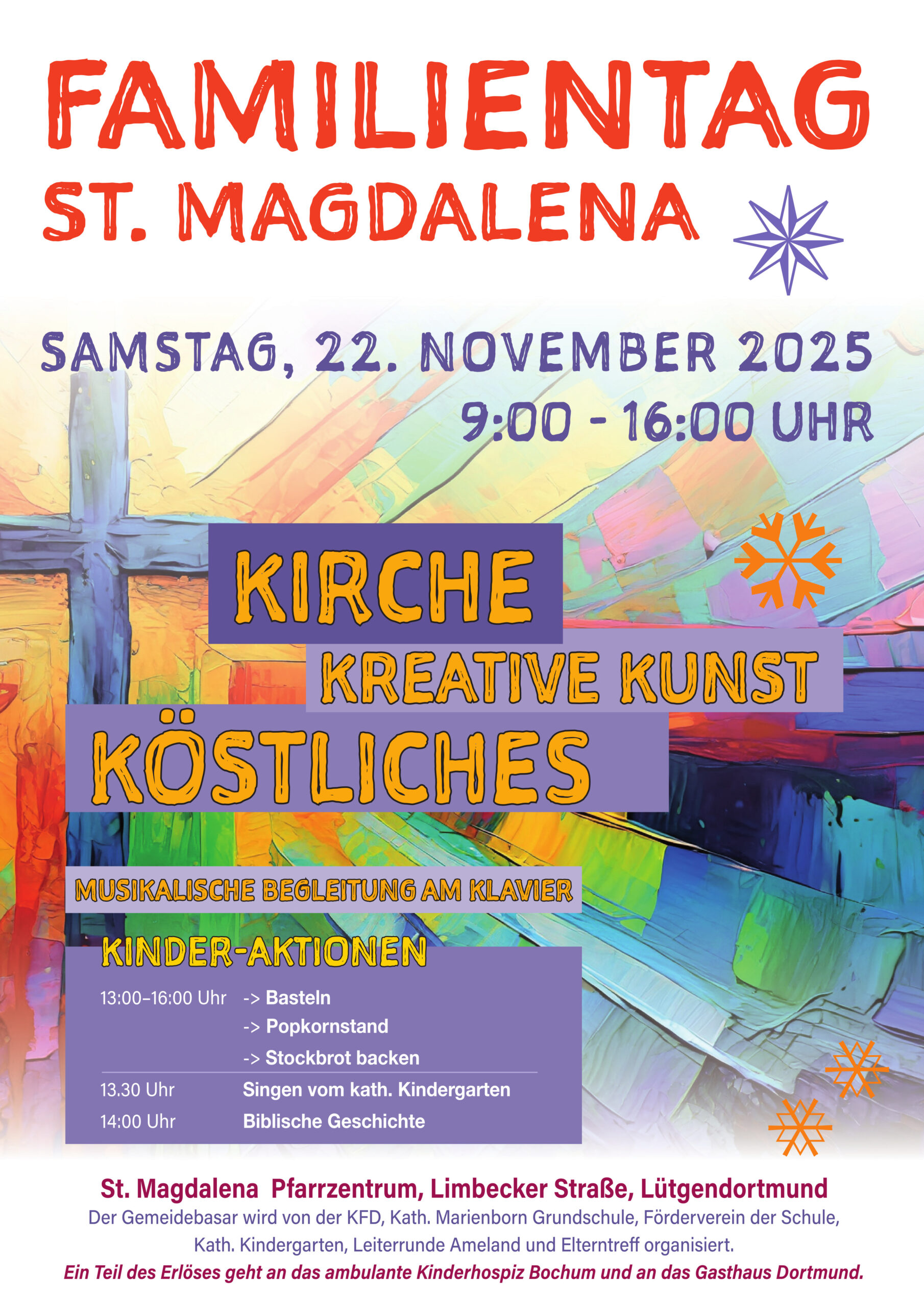Organisiert und durchgeführt wird der Familientag von der kfd, der kath. Marienborngrundschule, dem Förderverein der Schule, dem kath. Kindergarten, der Amelandleiterrunde und des Elterntreffes